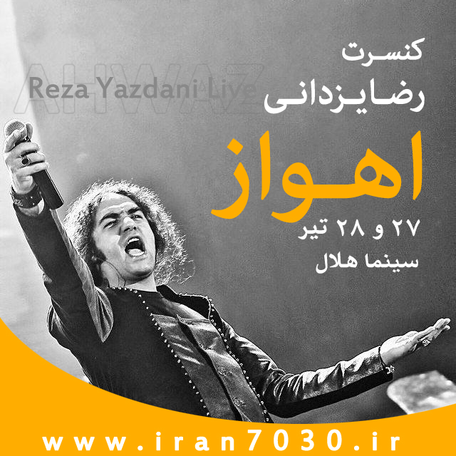 رضا یزدانی در تاریخ های 27و28 تیر در سالن سینما هلال اهواز به روی صحنه می رود.