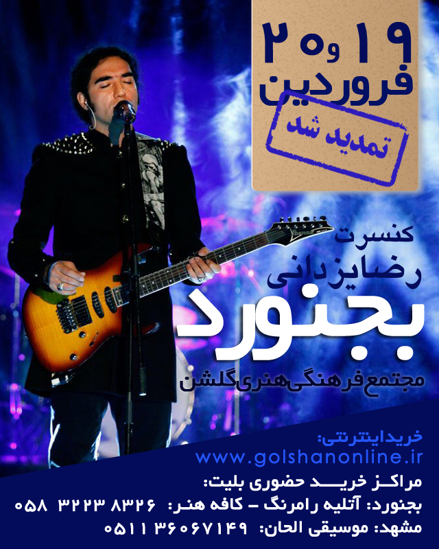 کنسرت بجنورد برای یک روز دیگر در تاریخ 20 فروردین تمدید شد.